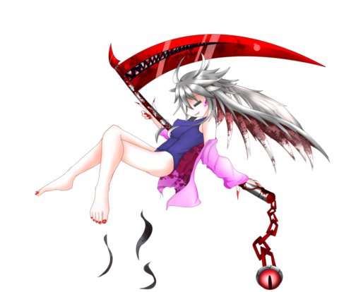 大きな鎌も持っております。口がついており可動します。鎌に関しては詳細には決めていませんので、デフォルメに応じて簡略化していただいても大丈夫です。